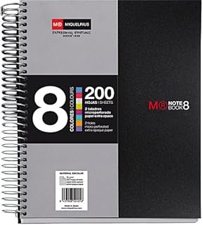 Miquel Rius Cahier A5 avec couverture extra large, 4 bandes de couleur, 120 feuilles lignées horizontales, papier 70 g microperforé avec 2 trous pour 2 anneaux, couleur bleu