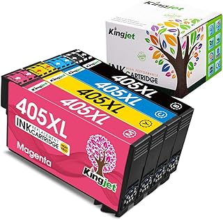 Kingjet 405XL Cartouches d'encre compatibles pour Epson 405 405 XL pour Epson Workforce Pro WF-3820DWF WF-3825DWF WF-4820DWF WF-4825DWF WF-4830DTWF Workforce (1 BK/1 C/1 M/1 Y)