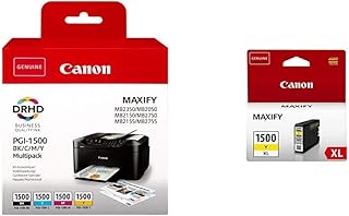 Canon PGI-1500 Cartouche BK/C/M/Y Multipack Noir, Cyan, Magenta, Jaune (Multipack Plastique) & PGI-1500XL Cartouche Y Jaune XL (Emballage Carton)