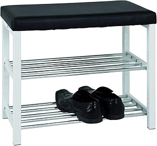 Haku Möbel Etagère chaussures avec assise rembourré, Cuir, Blanc/Noir/Chromé