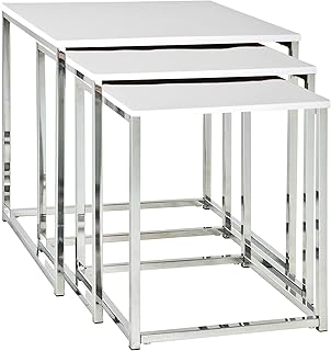 Haku Möbel 33383 Lot de 3 Tables Basse Acier/MDF Chromé-Blanc 39 x 39 x 42 cm