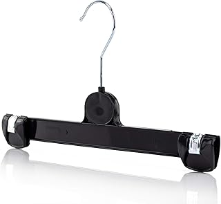 Hangerworld Lot de 25 Cintres en Plastique Noir à Pinces Réglables pour Pantalons/Jupes 34 cm