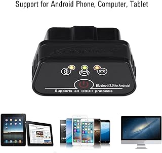 Outil de Diagnostic de Scanner d'Automobile, Keenso Bluetooth OBD2 Outil de Diagnostic Automatique d'Adaptateur de Scanner de Lecteur de Code d'OBDII pour Android(Black)