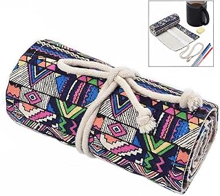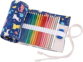 Amoyie Trousses pour 72 crayons de couleur, trousse à crayon enroulable, enveloppe de crayon, Sac de toile