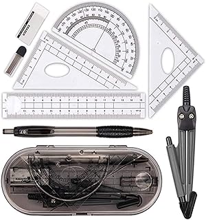 TheStriven 8 Pièces Boussole à Dessin et Rapporteur Kit De Géométrie Mathématique Ensemble De Boussole Et De Géométrie Règle Pédagogique Fournitures pour étudiants Dessin Compas