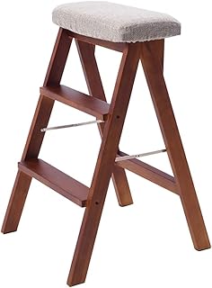 LHNLY-Stepladder Escabeau en bois massif, escabeau d'escalier, chaise d'escabeau multifonctionnel, marche d'escalier, chaise d'escalier d'une capacité de 150 kg (couleur noyer) Marches Pliantes