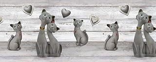Homelife Tapis de cuisine antidérapant lavable en vinyle, 52 x 140 cm, fabriqué en Italie, anti-taches, en PVC, intérieur et extérieur, motif chats et cœurs, long tapis en caoutchouc [140 cm]