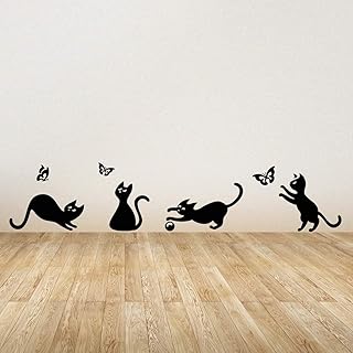 Autocollant mural en vinyle pour décoration de chambre d'enfant Motif chats sauter en jouant avec des papillons