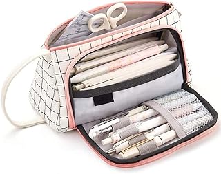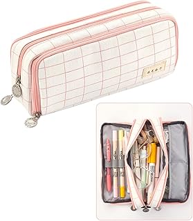 iSuperb Trousse à Crayons Grande Capacité Pencil Case Trousse à Maquillage Toile Porte-Sac De Papeterie sac Cosmétique pour Fournitures de Bureau pour le Collège (Plaid Rose A)