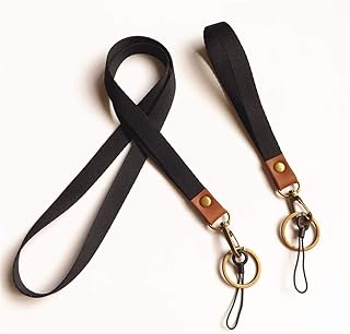 Lanyard Home – Cordon tour-de-cou et dragonne en tissu élégant avec fermoir rétro pour clés, badge d'identité, appareil photo, téléphone portable, Noir