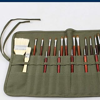 Hunpta Trousse à crayons avec 22 emplacements pour pinceaux de rangement pour peinture acrylique à l'huile aquarelle Gouache artiste Rouleau de toile Vert (vert armée)